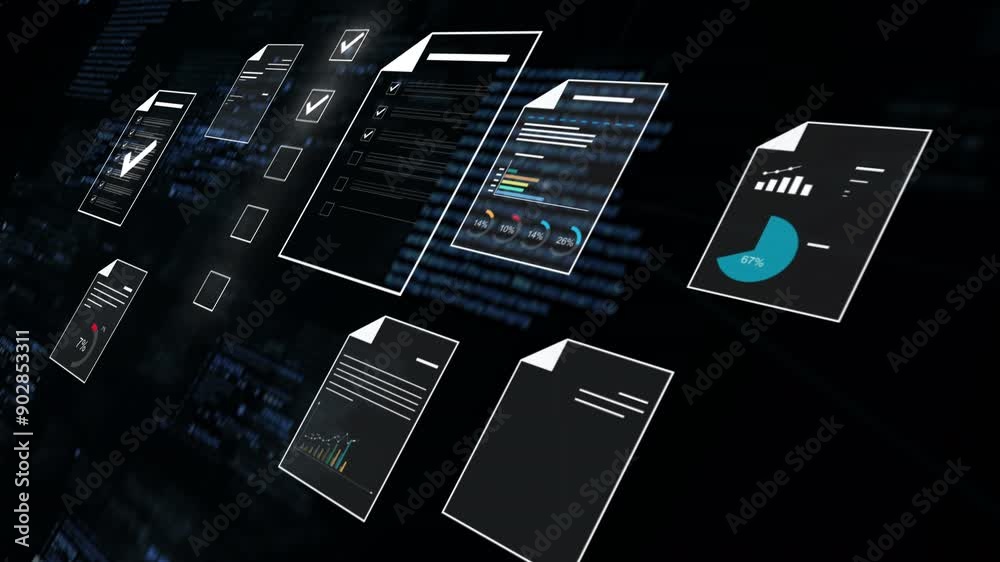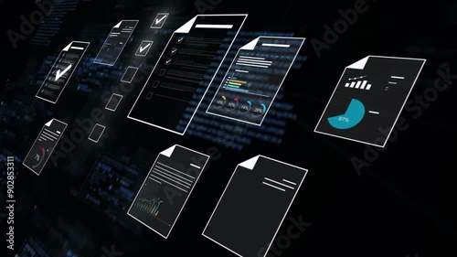 Wall mural document management concept, check electronic documents on digital documents on virtual screen docum