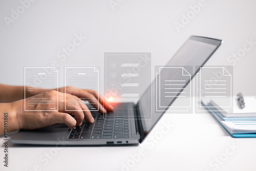Wall mural : Document management in business involves securing information and files in cyberspace using advanced