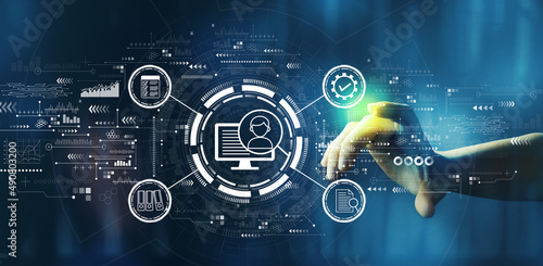 Wall mural document management system concept with hand pressing a button on a technology screen - Wall murals Wall mural document management system concept with hand pressing a button on a technology screen - Wall murals