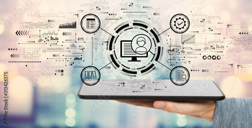 The watermark will not be included on Wall mural.: Document management system concept with man holding a tablet computer