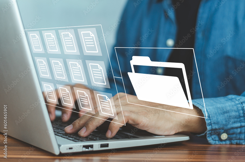 Wall mural : Document management system dms folder, file data management or data transfer backup technology -