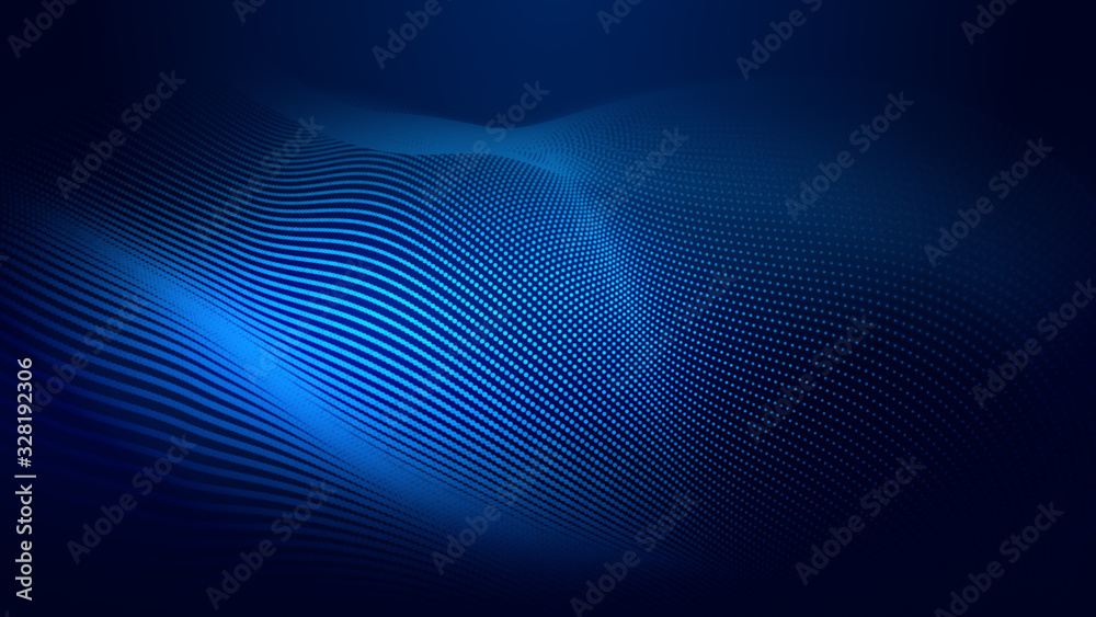 Wall mural : Dot blue wave light screen gradient texture background - abstract ai technology big data digital back