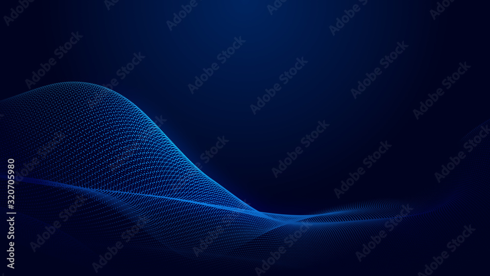 Wall mural : Dot blue wave light screen gradient texture background - abstract ai technology big data digital back