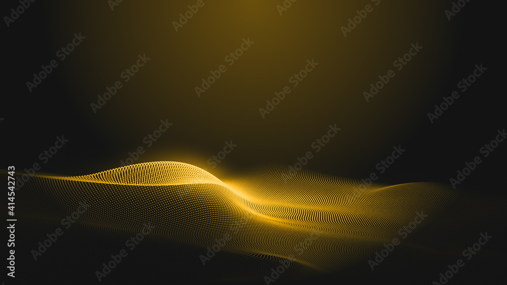 Wall mural dot gold wave light screen gradient texture background. abstract technology big data digital backgro