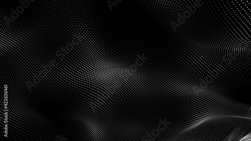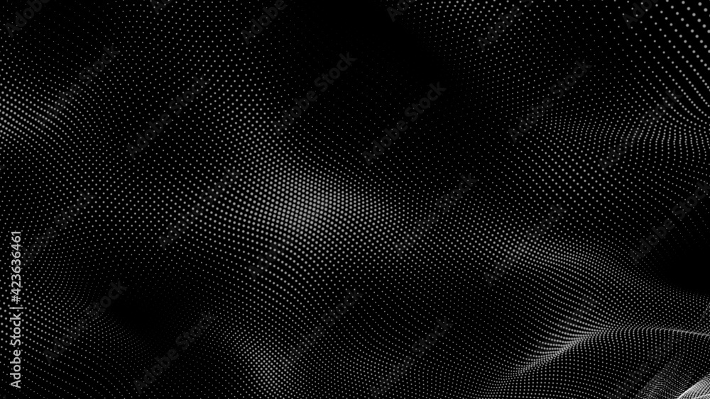 Wall mural dot white black wave technology texture background. abstract big data digital concept. 3d rendering.