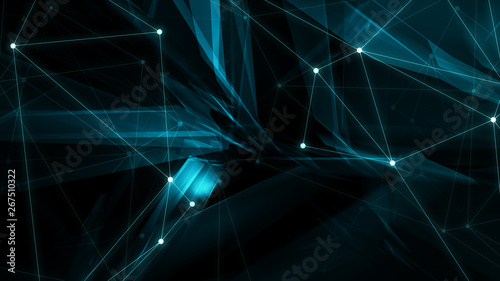 Wall mural : Dots and lines backgrounds with random opacity triangular geometric shapes, many transparent triangl
