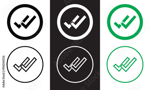 The watermark will not be included on Wall mural.: Double checking icon - green, black and white double tick, check mark - flat done sticker icon isolate