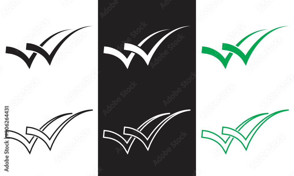 Wall mural double checking icon. green, black and white double tick, check mark. flat done sticker icon isolate