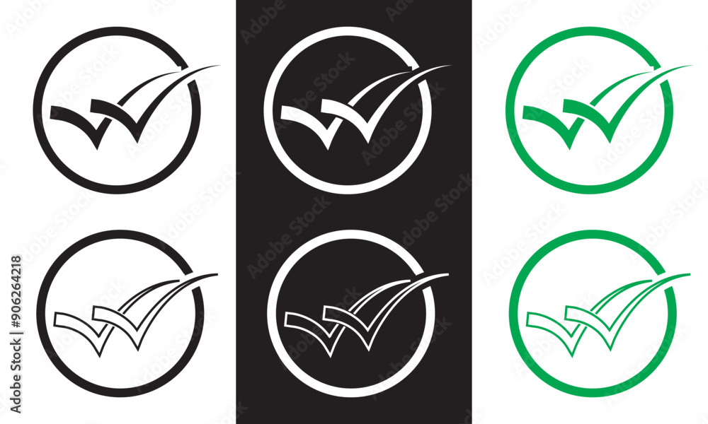 Wall mural double checking icon. green, black and white double tick, check mark. flat done sticker icon isolate