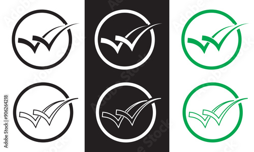Wall mural : Double checking icon - green, black and white double tick, check mark - flat done sticker icon isolate