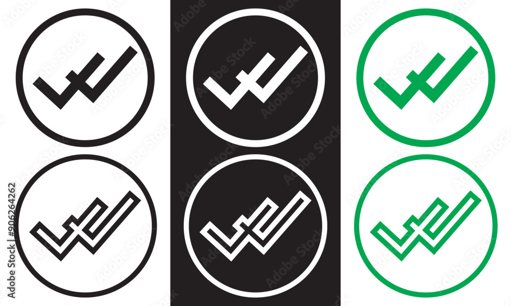 The watermark will not be included on Wall mural.: Double checking icon - green, black and white double tick, check mark - flat done sticker icon isolate