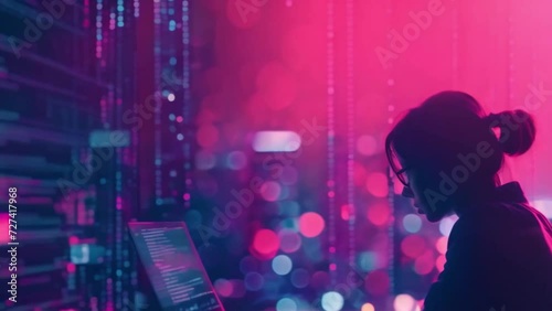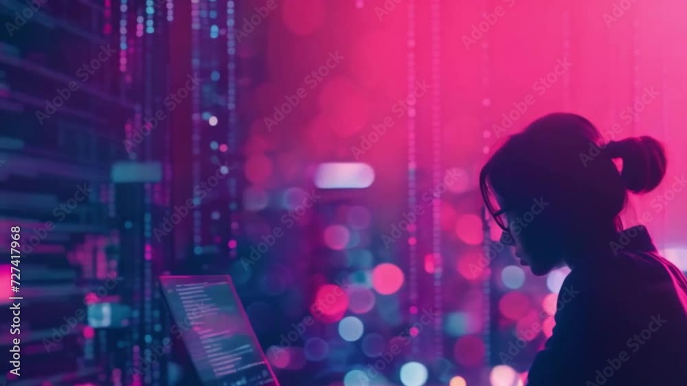 Wall mural double exposure of a person working at a computer and digital code. illustration of programmers writ - Wall murals Wall mural double exposure of a person working at a computer and digital code. illustration of programmers writ - Wall murals