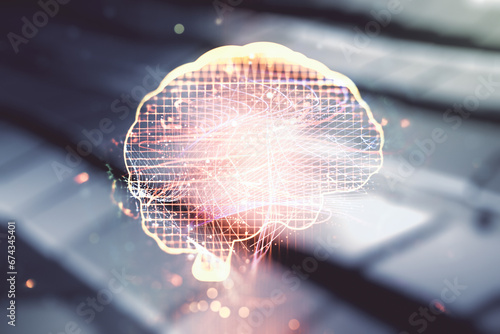 Wall mural double exposure of creative artificial intelligence interface on blurry metal background. neural net - Wall murals Wall mural double exposure of creative artificial intelligence interface on blurry metal background. neural net - Wall murals