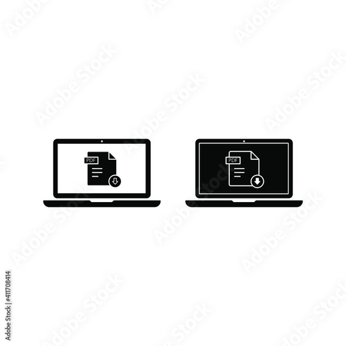 Wall mural : Download pdf button on laptop screen - downloading document concept - file with pdf label and down arr