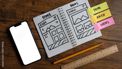 Wall mural draft sketch drawing template layout framework wireframe. user experience concept.