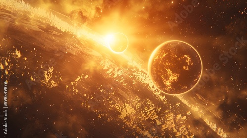 Wall mural : Dramatic binary sun system with unique day night cycles and weather patterns