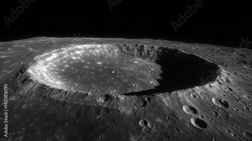 Wall mural dramatic lunar landscape, detailed surface topology, silvery lunar glow, rich crater formations, sta