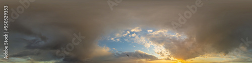 Wall mural : Dramatic sunset sky panorama with cumulus clouds - seamless hdr 360 pano in spherical equirectangular