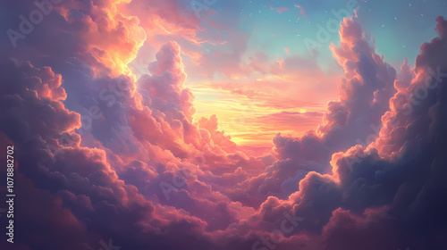Wall mural : Dreamy ethereal sky with colorful pastel clouds creating a magical and serene atmosphere , dreamcore