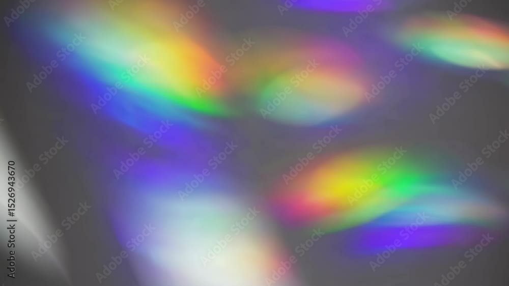 Dreamy holographic rainbow light refraction texture overlay with abstract soft bokeh effect on a whiWall mural