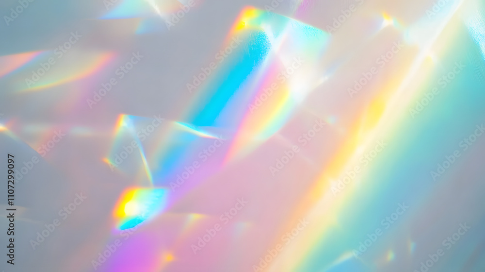 Dreamy holographic rainbow light refraction texture overlay with abstract soft bokeh effect on a whiWall mural