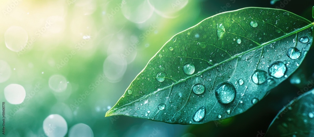 Wall mural droplets of water on a green leaf. with copy space image. place for adding text or design