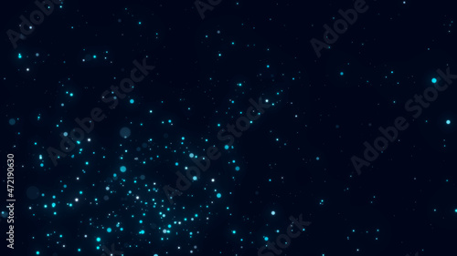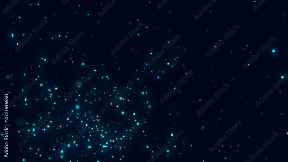 Wall mural dust particles moving in space. abstract blue cosmic background. 3d rendering.