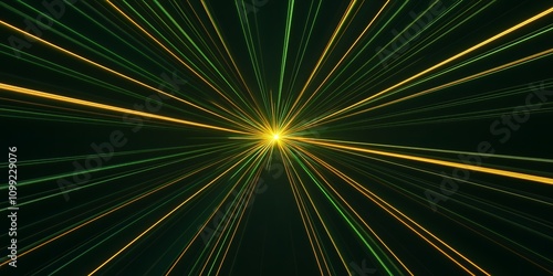 Wall mural : Dynamic abstract background with radiating green and gold lines converging at a bright center -