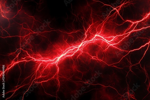 The watermark will not be included on Wall mural.: Dynamic abstract composition of red lightning bolts forming intricate patterns against stark black b