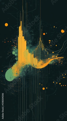 Wall mural dynamic abstract digital art displaying vibrant colors and geometric patterns on a dark background - Wall murals Wall mural dynamic abstract digital art displaying vibrant colors and geometric patterns on a dark background - Wall murals