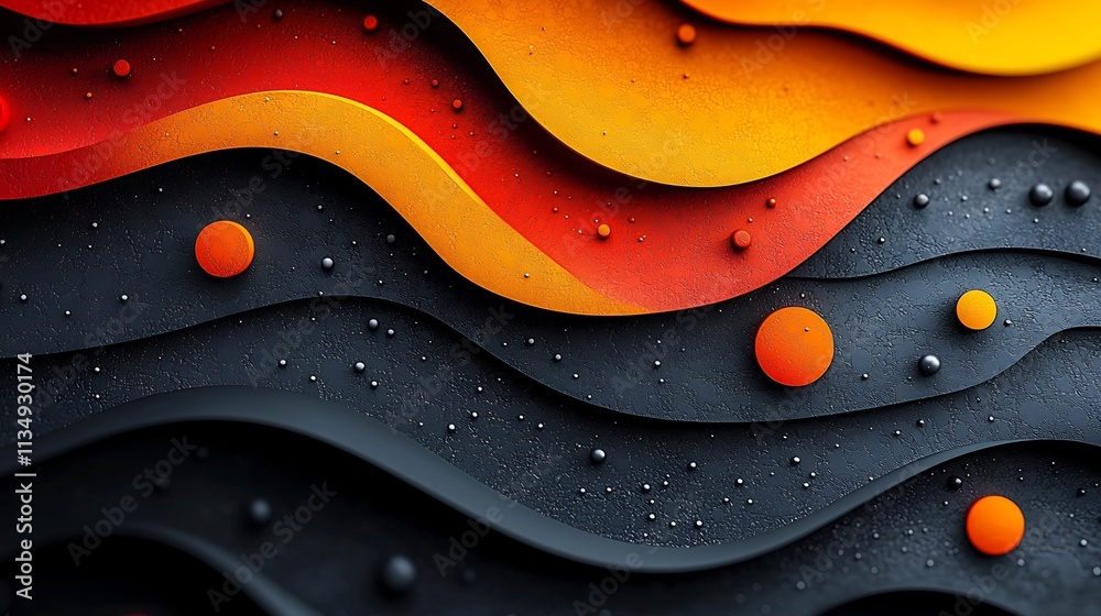 The watermark will not be included on Wall mural.: Dynamic abstract geometric shapes and fluid wavy lines symbolizing movement and harmony