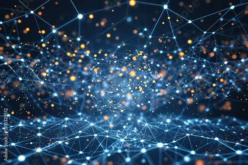 Wall mural : Dynamic abstract technology background featuring particles and mesh network design