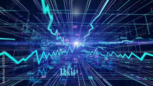 The watermark will not be included on Wall mural.: Dynamic abstract visualization graphs financial data analysis using luminous intersecting digital li