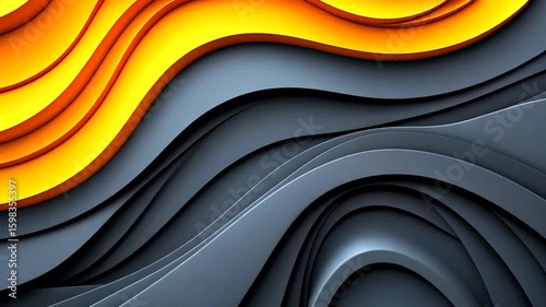The watermark will not be included on Wall mural.: Dynamic abstract wave pattern in shades of gray and gold layers for modern designs