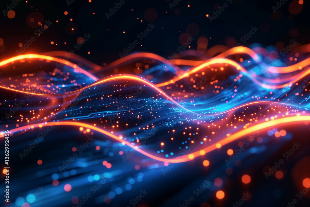 The watermark will not be included on Wall mural.: Dynamic abstract waveform of glowing particles and energy lines in a futuristic digital landscape wi