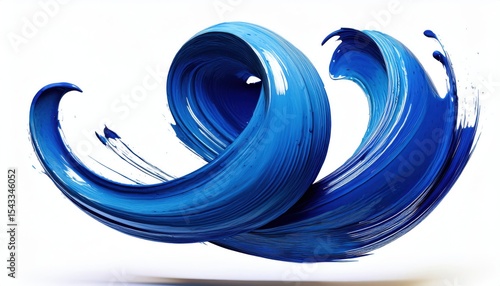 Wall mural : Dynamic blue abstract swirl with energetic brush stroke motion and circular waveform on white backgr
