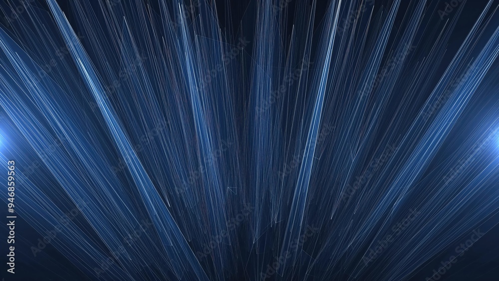 The watermark will not be included on Wall mural.: Dynamic blue light beams radiating from a central point creating an abstract background effect