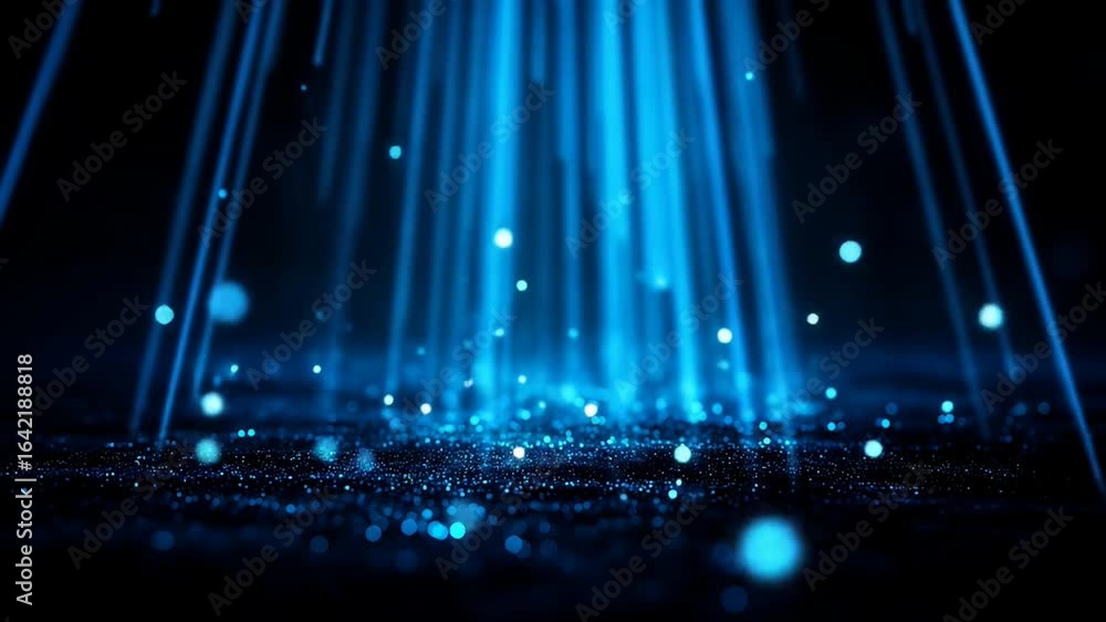 Wall mural dynamic blue light beams with floating particles digital abstract background animation. - Wall murals Wall mural dynamic blue light beams with floating particles digital abstract background animation. - Wall murals