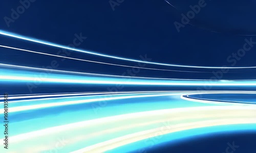 Wall mural : Dynamic blue light lines abstract motion background video loop: glowing curves and technology design