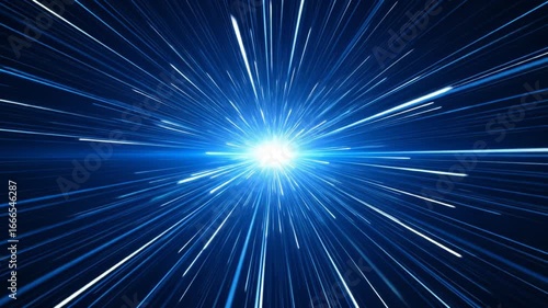 Wall mural dynamic blue light streaks converging with motion blur creating a futuristic abstract background for