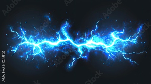 The watermark will not be included on Wall mural.: Dynamic blue lightning bolt across a dark background, creating an electrifying visual effect -