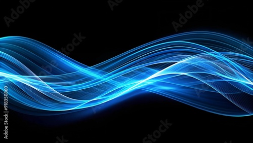 The watermark will not be included on Wall mural.: Dynamic blue lines flowing on a black canvas generative ai