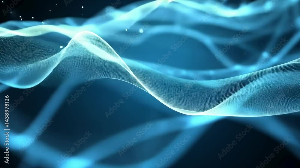 Wall mural : Dynamic blue waves and particle motion in abstract digital animation