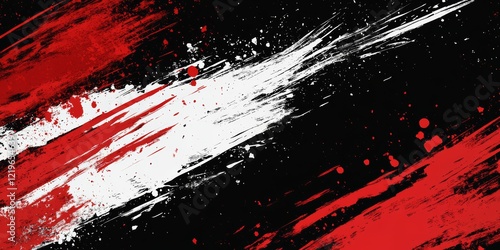 Wall mural : Dynamic brush strokes in red and white create a vibrant energetic grunge pattern that contrasts bold