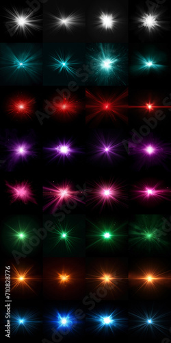 Wall mural : Dynamic celestial explosion set of various colors: black background with glowing multicolored sunbur