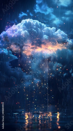 Wall mural : Dynamic cloud computing data flow in stormy digital skies