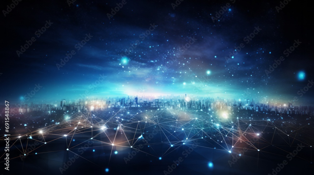 Wall mural dynamic cyberspace: neon glow and digital network connections, abstract 3d render