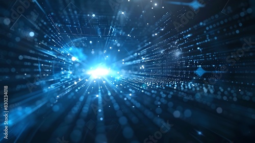 Wall mural : Dynamic digital data stream visualization, blue tech abstract background, cyber tunnel concept, mode