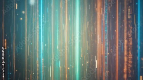Wall mural : Dynamic digital rain background with glowing lines and data streams for technology projects