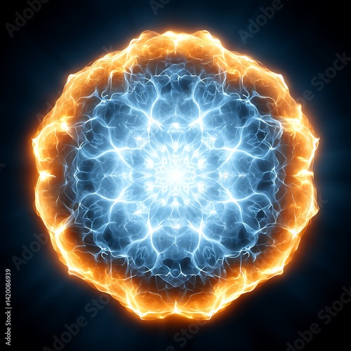 The watermark will not be included on Wall mural.: Dynamic energy orb with electric discharge effect and fiery outer glow cosmic power abstract visual -